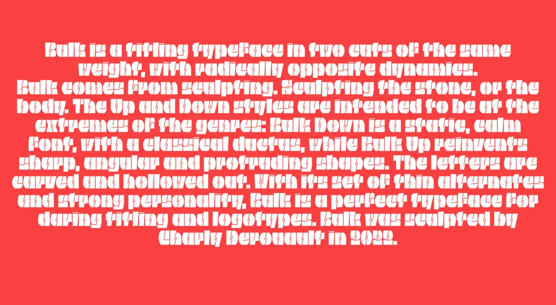 Bulk is an awesome typeface that challenges how letters are constructed. Bulk uses heavy, block-shaped outlines and delicate linear ‘cuts’ to form its letters. It’s an excellent choice for posters, giant typography, and branding.