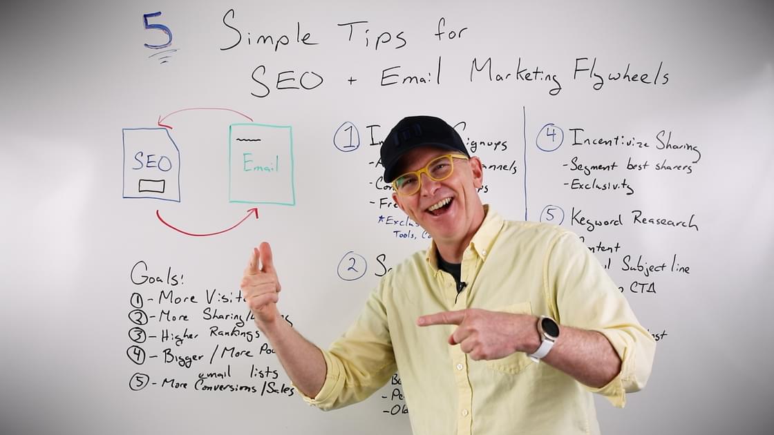 So it’s like a flywheel. It’s really hard to get started. But as you get going, it gets easier and easier and easier, and everything grows a little bit more effectively. So if you’re an experienced SEO and email marketer, this video may not be for you. But if you primarily do SEO and you’re looking for ways to improve your mail marketing, or you’re primarily an email marketer and you’re looking for ways to grow your SEO, these are the tips for you.