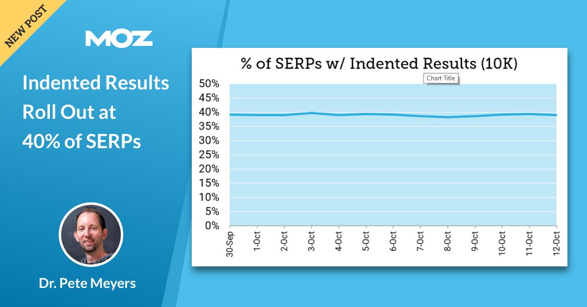 For the 13 days for which we currently have data, the prevalence of indented results on page one Google SERPs in MozCast has been stable at around 40%. Since we often see new features roll out at single-digit percentages, this is a significant development.