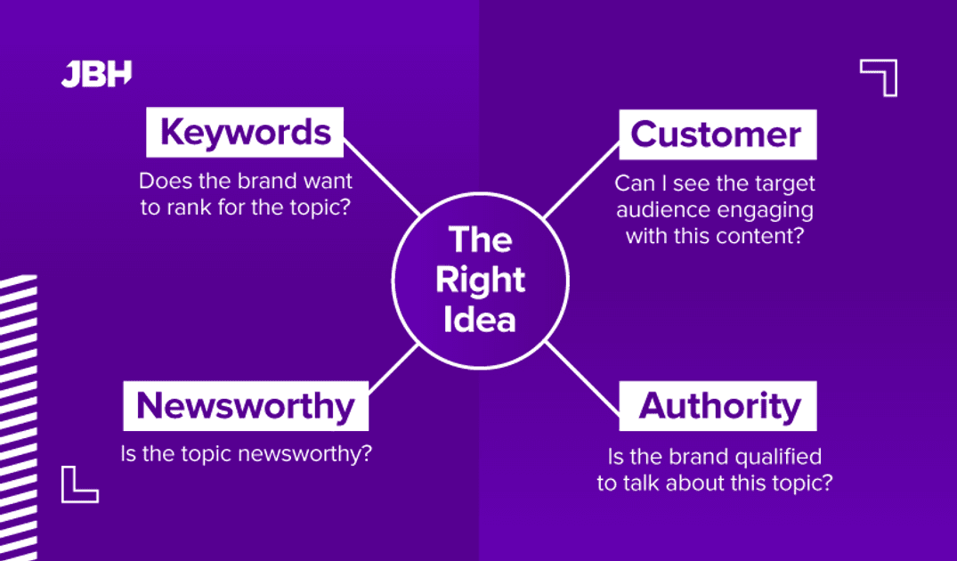 In order to make this work cross-industry, we’ve developed a five-point checklist to ensure that relevance is prioritized at every stage. Depending on the brand and the sector, we’ll follow some or all of the points below to ensure that we’re considering the relevance of our digital PR campaign ideas above all else.